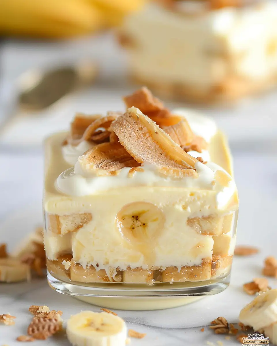 A creamy and delicious dessert that combines the flavors of banana and vanilla with a crunchy Chessman cookie layer.