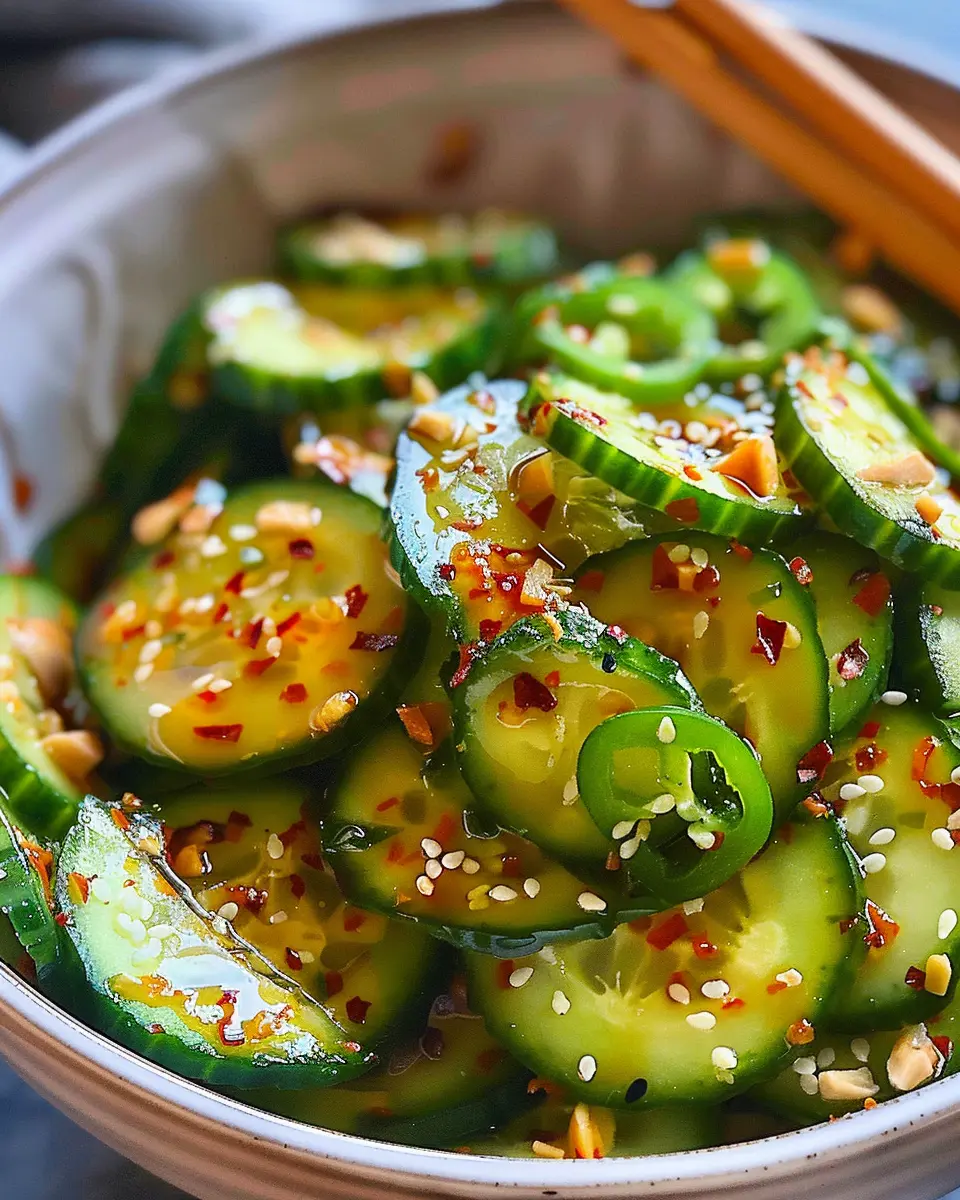 If you’re a fan of bold flavors, consider turning your easy Asian cucumber salad into a spicy affair. Simply add sliced jalapeños or a touch of sriracha to the dressing for an extra kick. You can also toss in some chili flakes for that fiery warmth. For a smokier profile, drizzle a little sesame oil over the top. This variation works beautifully when paired with grilled meats or as a side to any Asian-inspired meal. Plus, with the heat, you might just find yourself reaching for that cool cucumber more often!