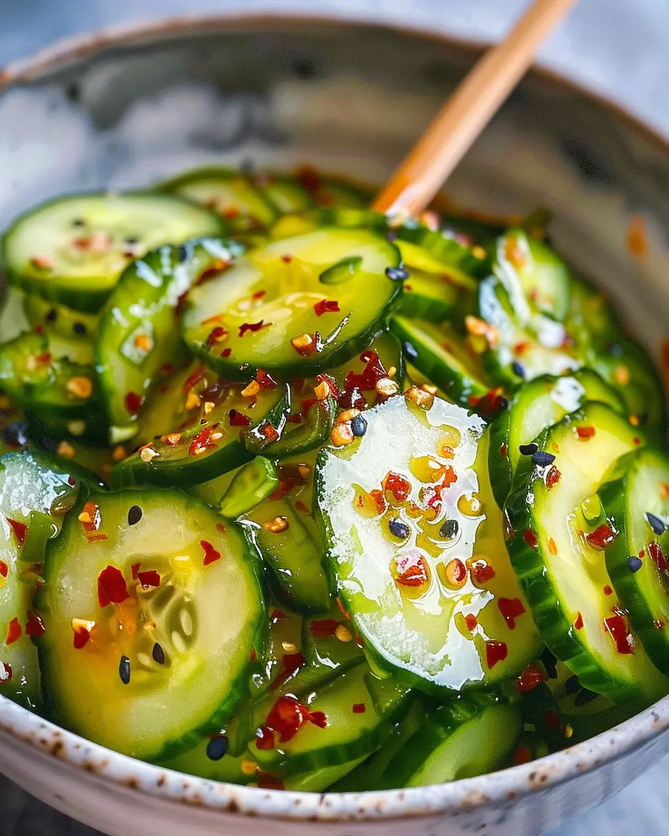 This salad goes beyond just being light; it’s packed with essential vitamins and minerals. Cucumbers are a great source of Vitamin K and potassium, contributing to your daily nutritional needs. For more information on the nutritional benefits of cucumbers, check out this Nutritional Science review. Additionally, the sesame oil adds healthy fats, while the vinegar includes probiotics, promoting gut health!