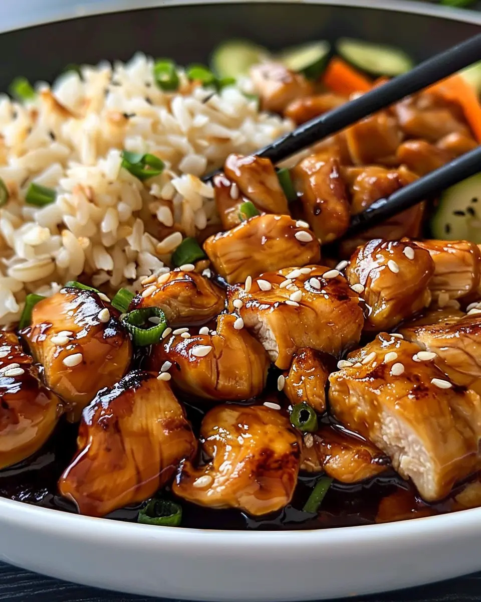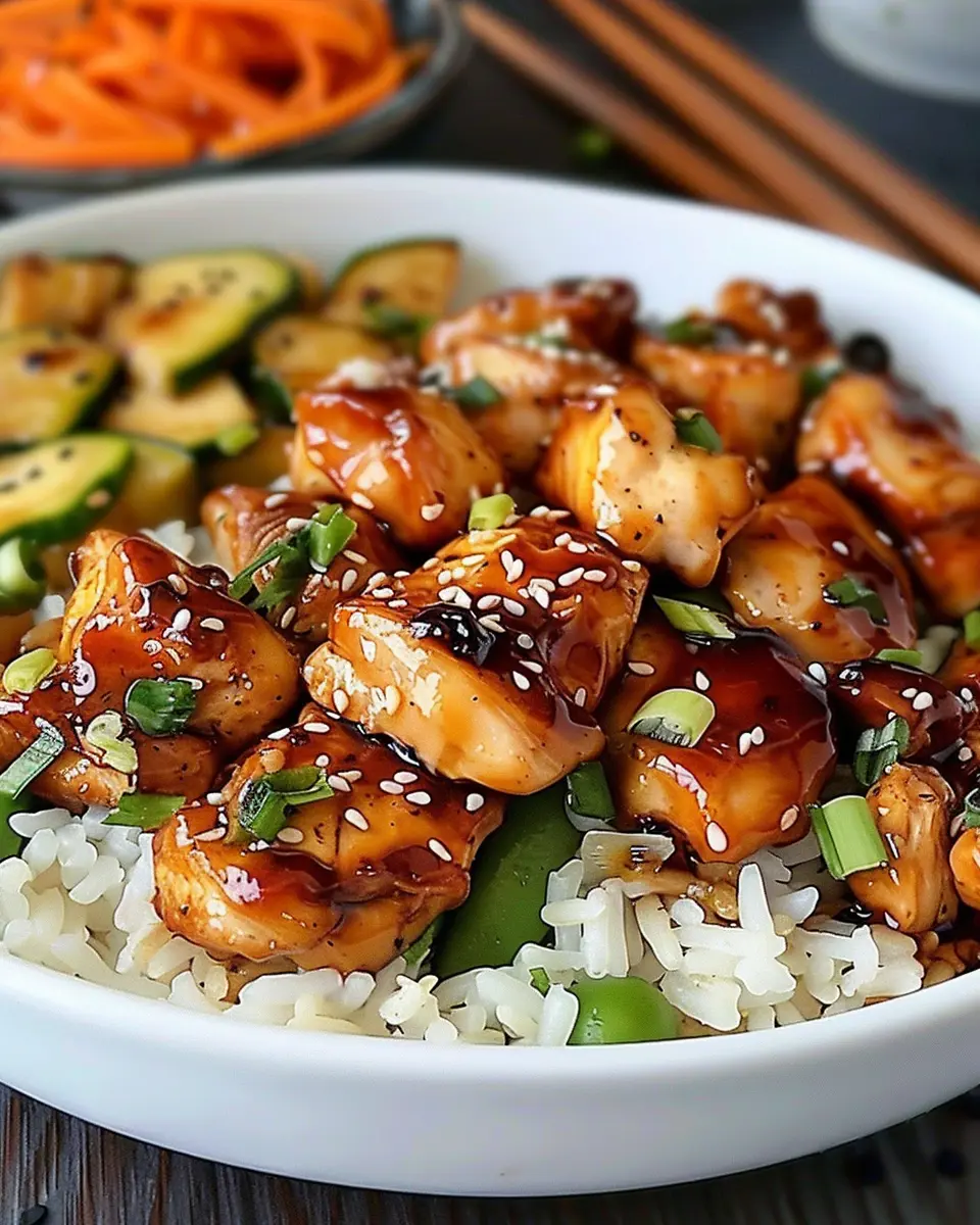 • Layer It Up: Start with a bed of fried rice; top it with the sliced hibachi chicken and a scattering of colorful stir-fried veggies.