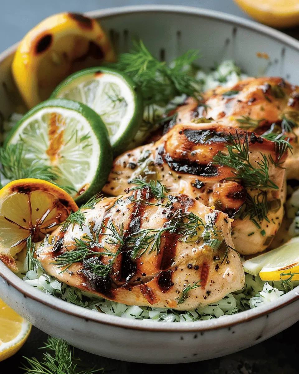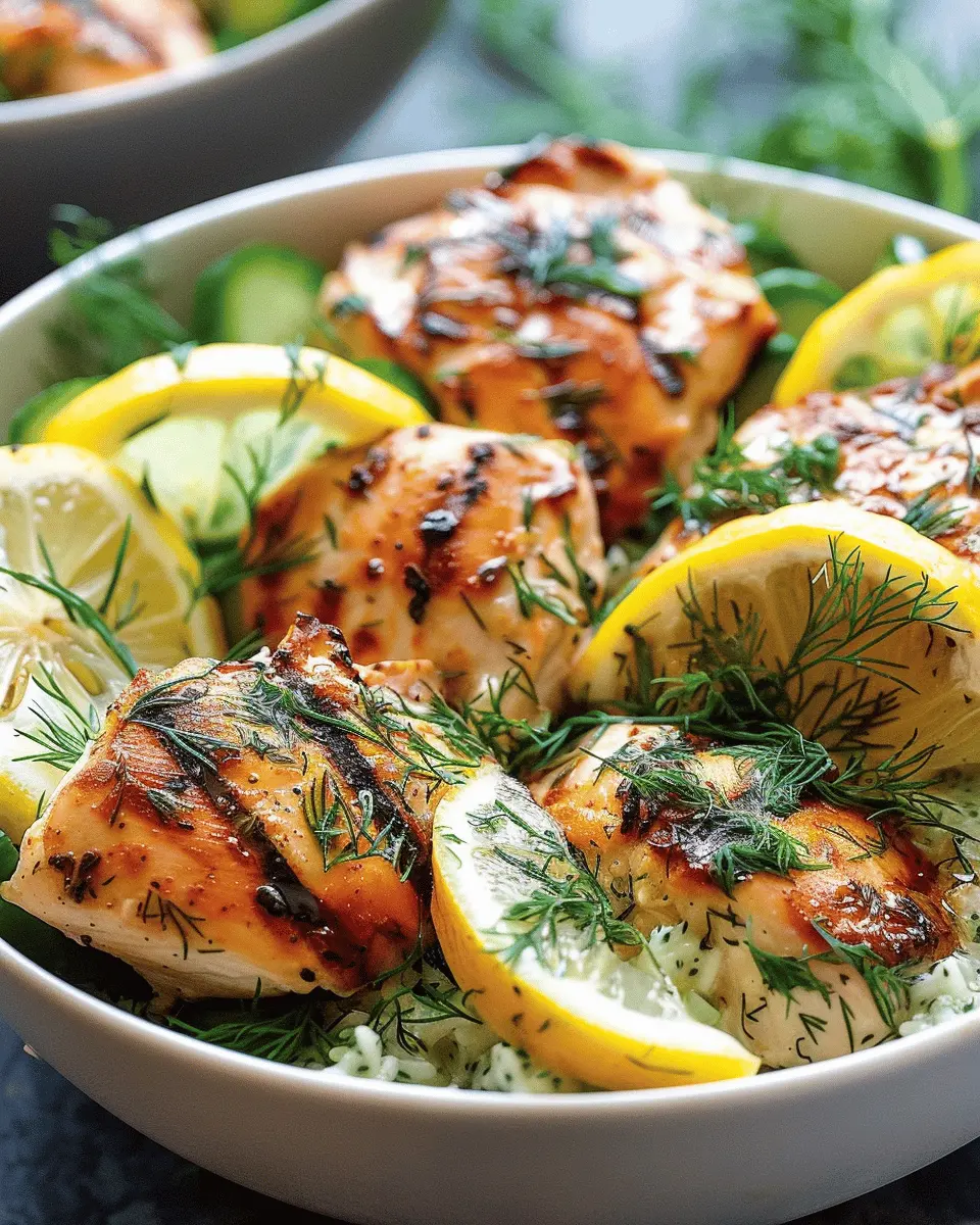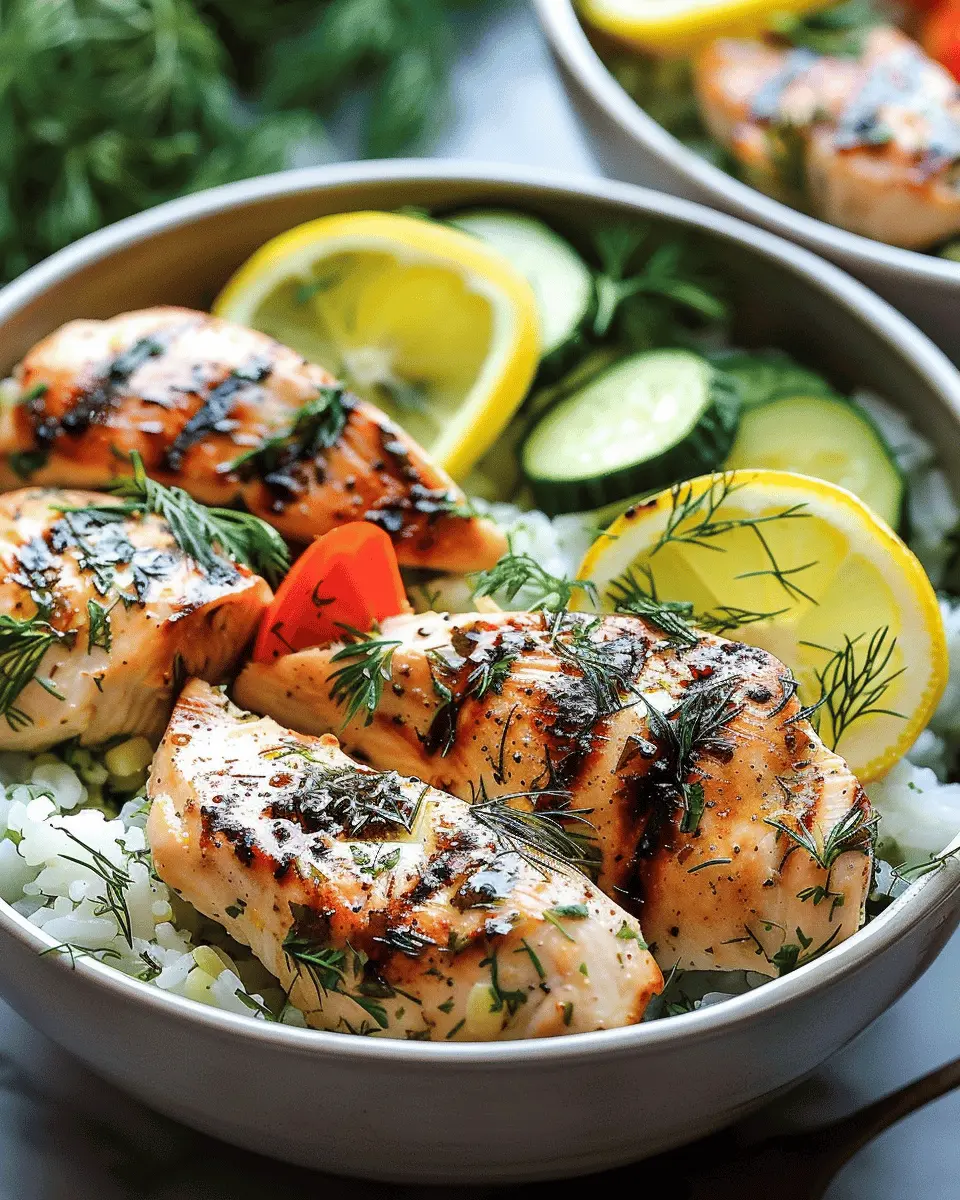 Enjoy a fresh and flavorful meal with these Mediterranean Lemon-Dill Chicken Bowls, perfect for any occasion!
