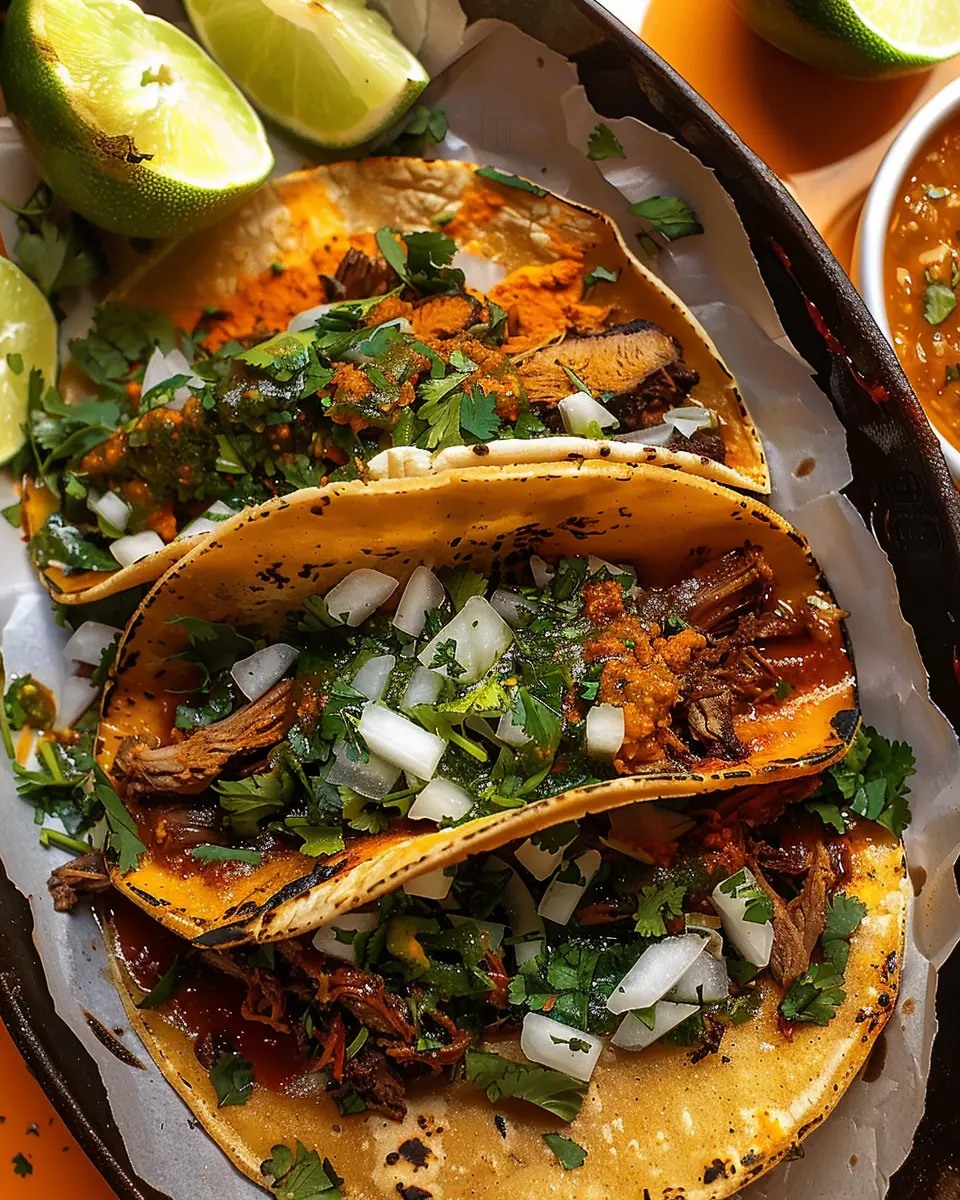 For sides, try serving them with some classic Mexican rice or tangy refried beans. A fresh pico de gallo or a simple garden salad can balance the richness of the tacos.