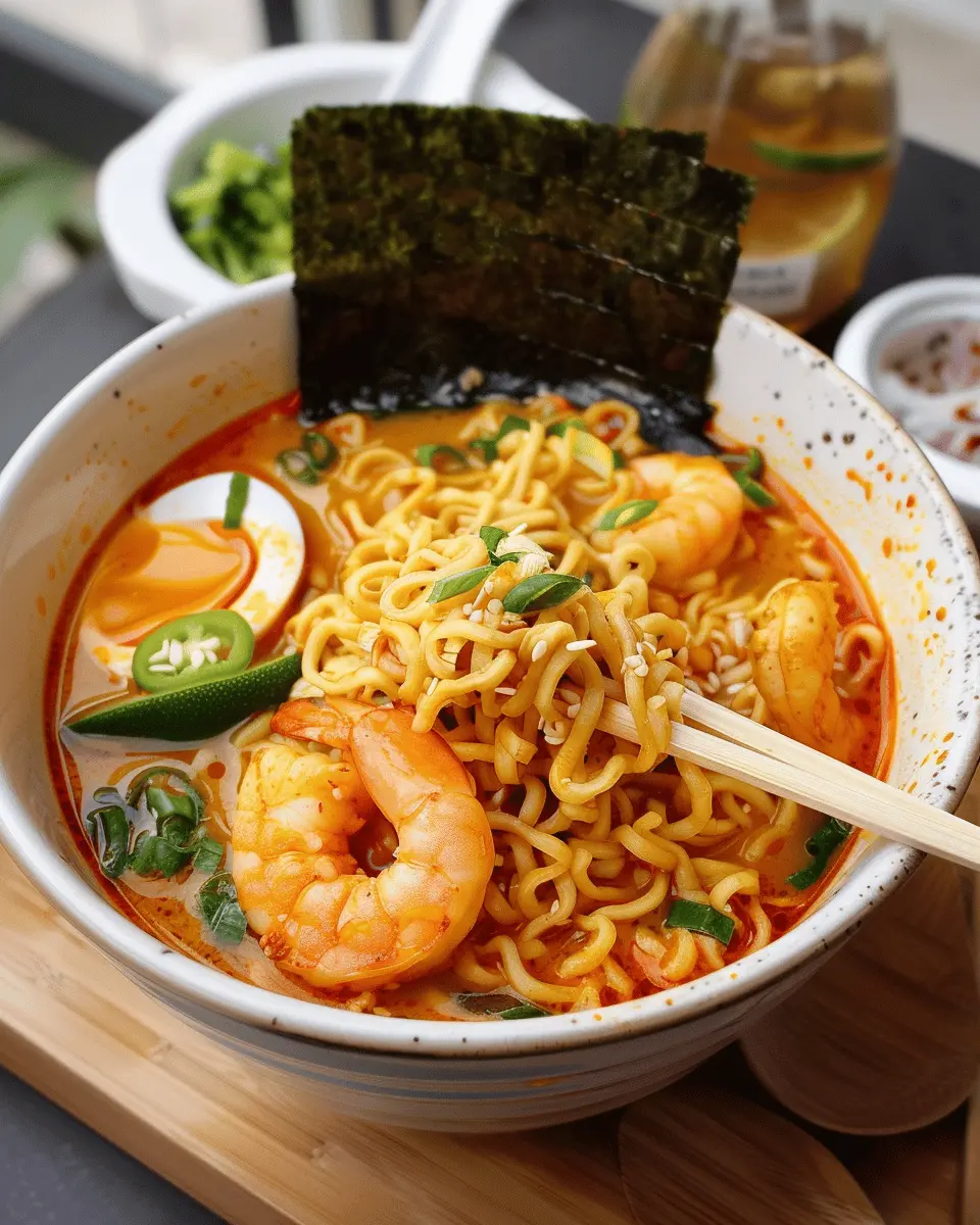 Imagine indulging in this spicy, savory broth, layered with succulent shrimp, vibrant vegetables, and a perfect hint of spice. It’s not just food; it’s a hug in a bowl. Make it your own by adjusting the heat level or adding your favorite toppings. For more inspiration on maximizing your ramen experience, check out trusted sources like Serious Eats and Bon Appétit. Enjoy crafting your masterpiece!
